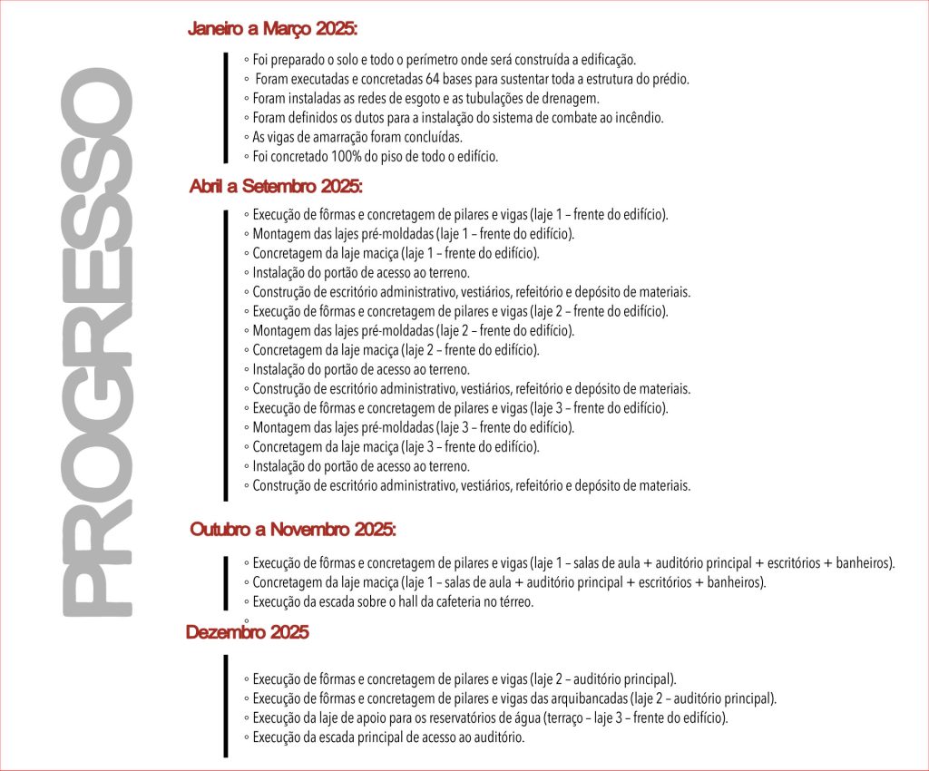 Reconhecendo os tempos em que vivemos e a urgência de preparar o caminho para o Rei, dissemos “sim” ao projeto de CONSTRUÇÃO DE UM NOVO CAMPUS, com o propósito de cumprir a missão que Deus nos confiou.